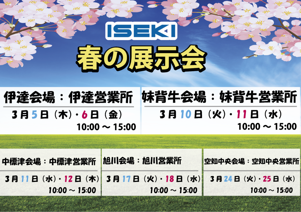 今年もISEKI Japan北海道カンパニーでは26年春の展示会を開催することとなりました!